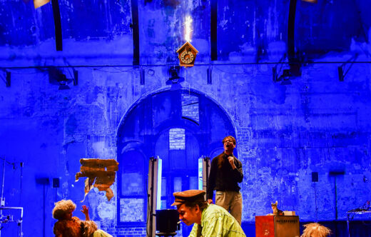 Scheinbar eindeutige Objekte wie die Kuckucksuhr verwandeln sich in surreale Horrorhäuser, riesige Spinnen krabbeln aus den Ecken, und die Hinterbühne verwandelt sich in eine große Leinwand für Schattenspiele aller Art. Die Skizze einer Handlung, bei der ein Bruder seine Schwägerin im Vollsuff schwängert, läuft völlig aus dem Ruder und eröffnet so ein wahres Feuerwerk an Assoziationen, die sich munter überlagern und aufeinander stapeln. Ein Dreirad fährt kinderlos durch die Gegend, und am Ende gibt es gar einen Toten, natürlich mit Musik.